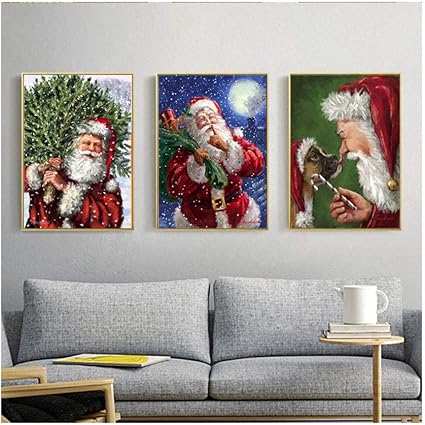 Quadro Di Natale Quadro Su Tela Decorazioni Per La Casa Moderna Stampa Artistica Da Parete E Poster Babbo Natale Per Soggiorno 50x70cmx3 Senza Cornice Amazon It Casa E Cucina