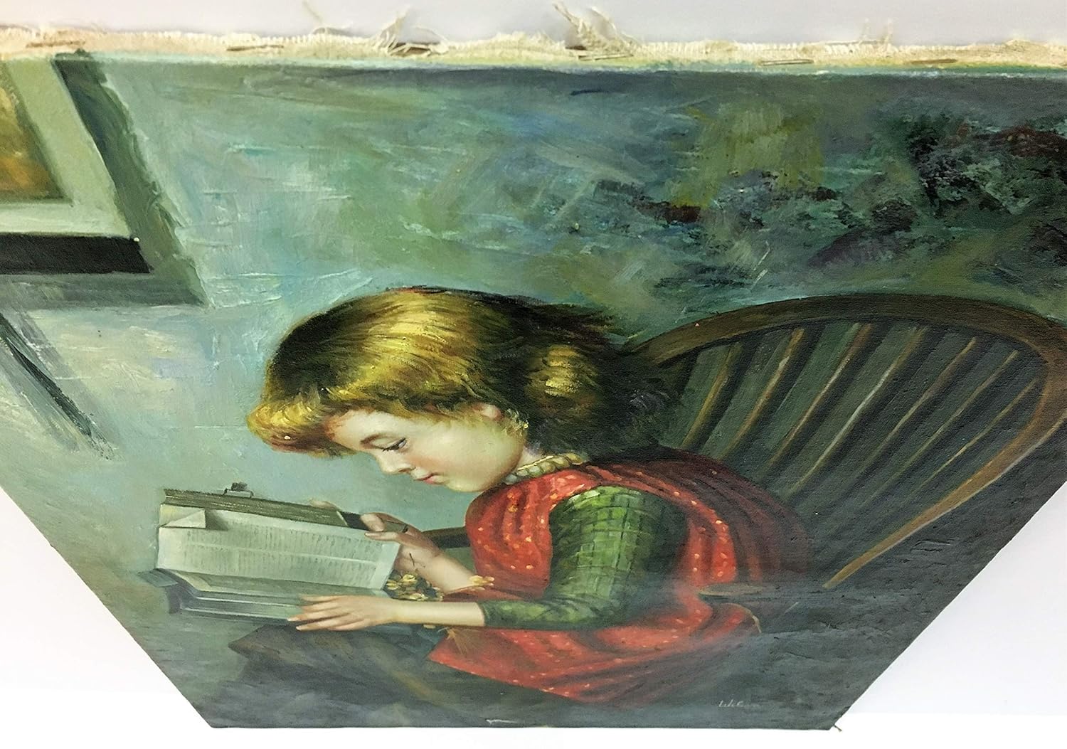 Dipinto A Olio Su Tela Di Pittore Europeo Soggetto Bambina Che Legge Cm 40 X 50 Amazon It Handmade