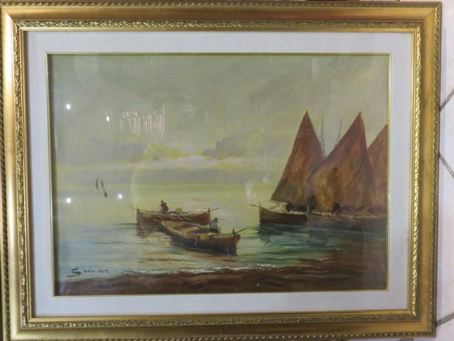 Vecchio Quadro Dipinto Mano In Cornice Zumbo Pescatori Su Barca A Vela Mare Di Ebay