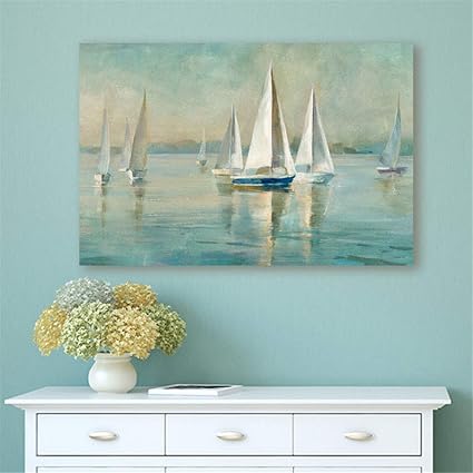 Rjjwai Dipinto A Mano Vista Sul Mare Barca A Vela Quadro Su Tela Decorazioni Per La Casa Immagini Murali Per Soggiorno Senza Cornice Camera Da Letto 60x90cm Amazon It Fai Da Te