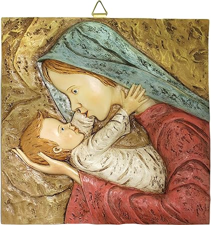 Quadro Madonna Con Bambino Quadrato In Resina Dipinta A Mano Bassorilievo 26 X 26 Cm Amazon It Casa E Cucina