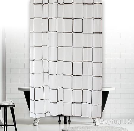 Beytug New Peva Bathroom Shower Curtain Extra Long With Hooks 180 X 200 Cm Quadro Amazon Co Uk Kitchen Home