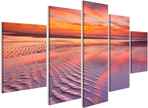 Bilderfelix Quadro Bellissimo Tramonto E Riflessi Sulla Spiaggia Con Marea Bassa Fotografia Hd Tela Su Tela Su Tela Amazon It Casa E Cucina