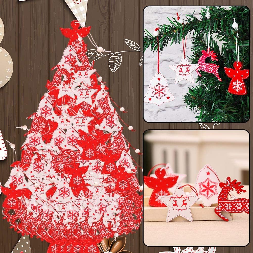 Natale Ciondolo In Legno Bestzy 24 Pezzi Pendenti Legno Natalizi Addobbi Albero Di Natale Decorativi Per Albero Di Natale Fai Da Te Bianco Rosso Addobbi E Decorazioni Per Ricorrenze Ciondoli E Pendenti