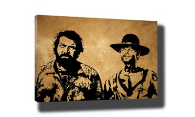 Bud Spencer E Terence Hill Trinita Quadro Stampa Su Tela Stretched Canvas Print Druck Auf Keillenwand Impression Sur Toile Riproduzione Dal Dipinto Originale 70 X 35 Cm Con Telaio