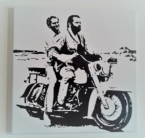 Bud Spencer And Terence Hill Motorcycle Painting Contemporary Hand Painted On Canvas Pop Art Effect Size 50 X 50 Cm Amazon De Kuche Haushalt