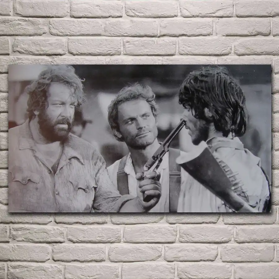 Filmes Antigos Obras De Arte Terence Hill Bud Spencer Sala De Estar Decoracao Da Parede Casa Quadro Madeira Tecido Poster Kl202 Pintura E Caligrafia Aliexpress