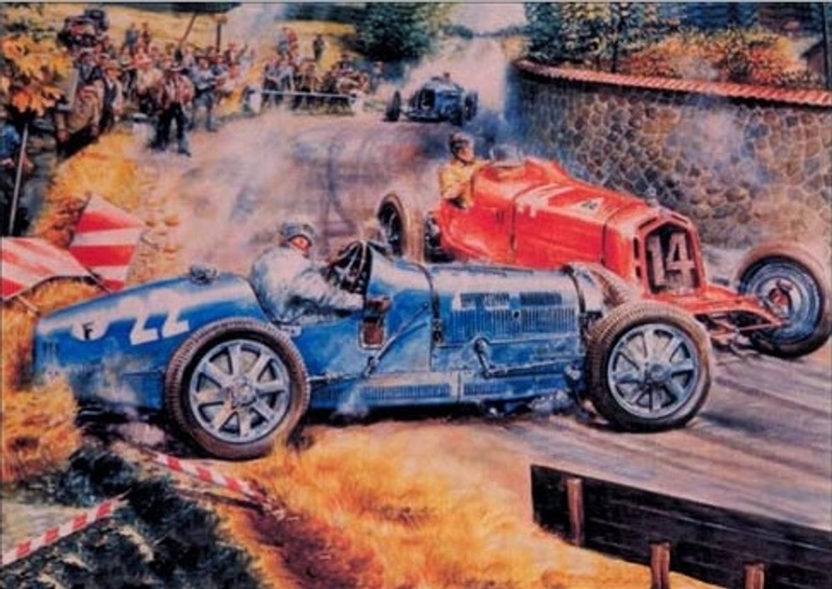 Quadro Bugatti Vintage Auto Storia Stampa Tela Canvas Volante Gara Strada Top Ebay