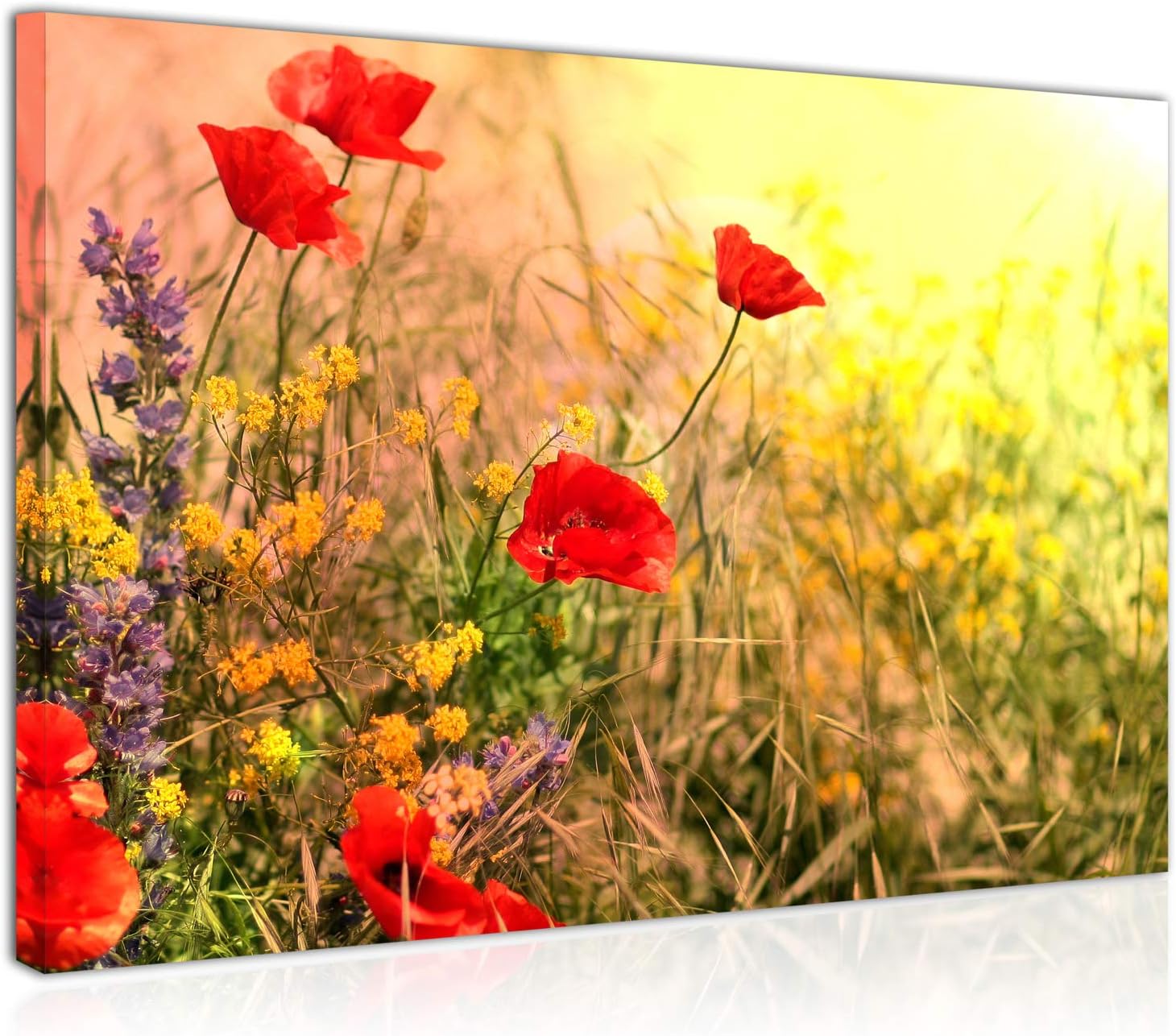 Tele Casa E Cucina Topquadro Quadro Stampa Su Tela 70x50cm Decorazioni Interni Fiori Di Campo Campo Di Papaveri Fiori Rossi Al Tramonto
