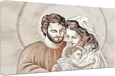 Capezzale Quadro Moderno Su Tela Sacro Sacra Famiglia Madonna Con Banbino E San Giuseppe
