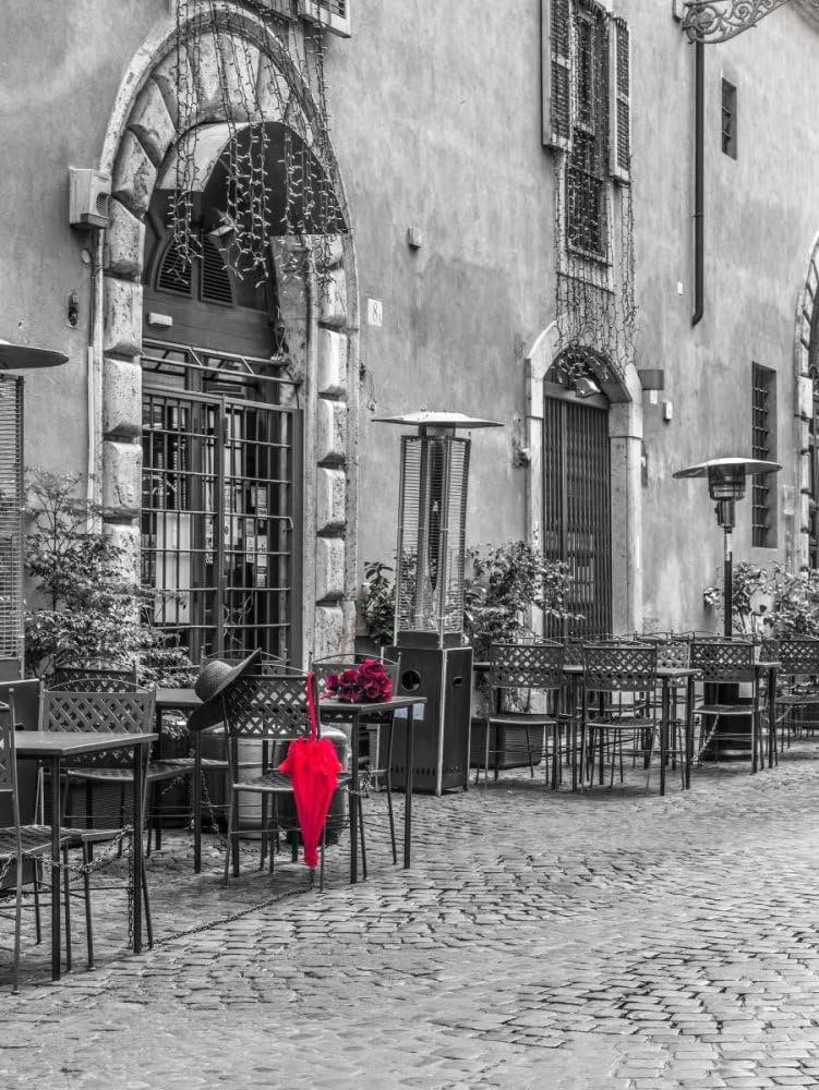 Feeling At Home Quadro Su Tela Umbrello Rosso Con Il Cappello Femminile E Mazzo Di Rose Sul Tavolo Del Caffe Roma Italia Fran 60 X 45cm Amazon Co Uk Kitchen Home