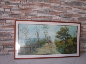 Quadro Paesaggio Arte Bucolica Con Cornice In Ciliegio 132x73 Ebay