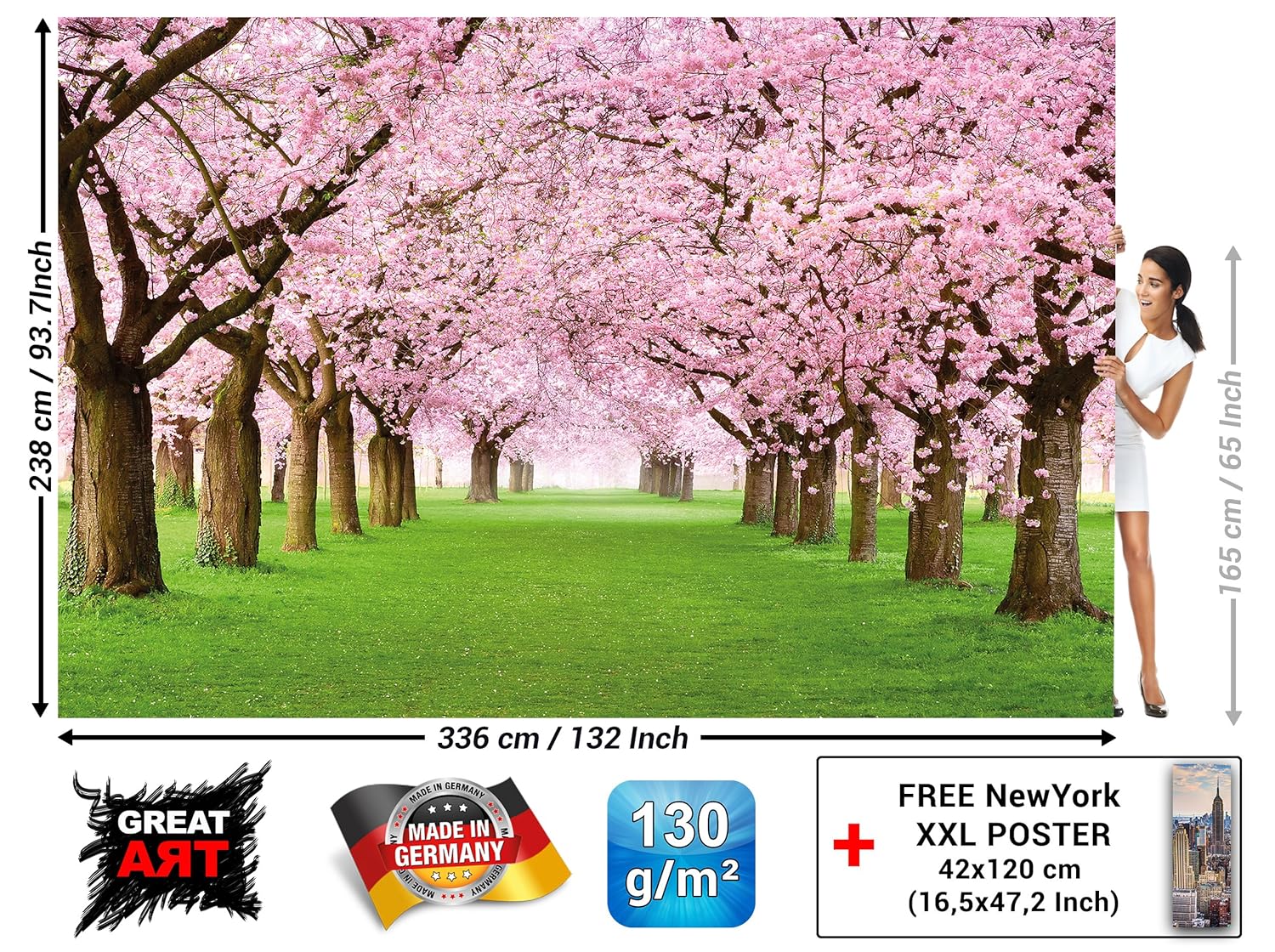 Fotomurale Fiori Di Ciliegio Quadro Decorazione Fiori Primavera Giardino Piante Bosco Parco Natura Cherry Tree Ciliegio In Fiore Viale I Fotomurales By Great Art 336 X 238 Cm Pitture E Trattamenti Per