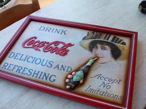 Coca Cola Quadro In Legno Pubblicitario Vintage