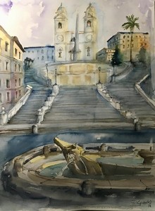 Quadro Acquerello Watercolor Piazza Di Spagna A Roma Con Autentica Ebay