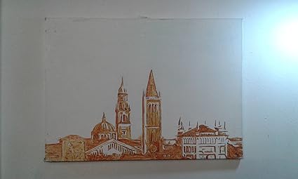 Quadro Con Acquerello 50x70 Veduta Piazza Duomo In Parma Amazon It Casa E Cucina