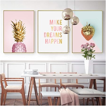 Yiyaofbh Quadro Su Tela Nuova Frutta Banana Rosa Ananas Creativo Inglese Arte Stampa Astratta Poster Immagine Decorazione Della Parete Di Casa 50x70 Cm 19 7 X27 6 X3 Con Cornice Amazon It Casa E Cucina