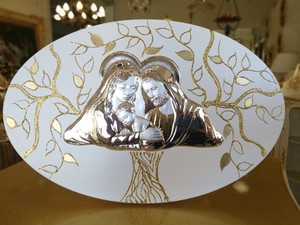 Stampe Su Legno Casa E Cucina 113 X 63 Cm Deco Italia Quadro Sacro Su Pannello Di Legno Con Cornice E Glitter Argento Sacra Famiglia Holy Kiss Grey
