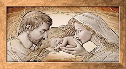 Deco Italia Quadro Sacro Su Pannello Di Legno Con Cornice E Glitter Oro Sacra Famiglia Holy Kiss Brown 113 X 63 Cm Amazon It Casa E Cucina