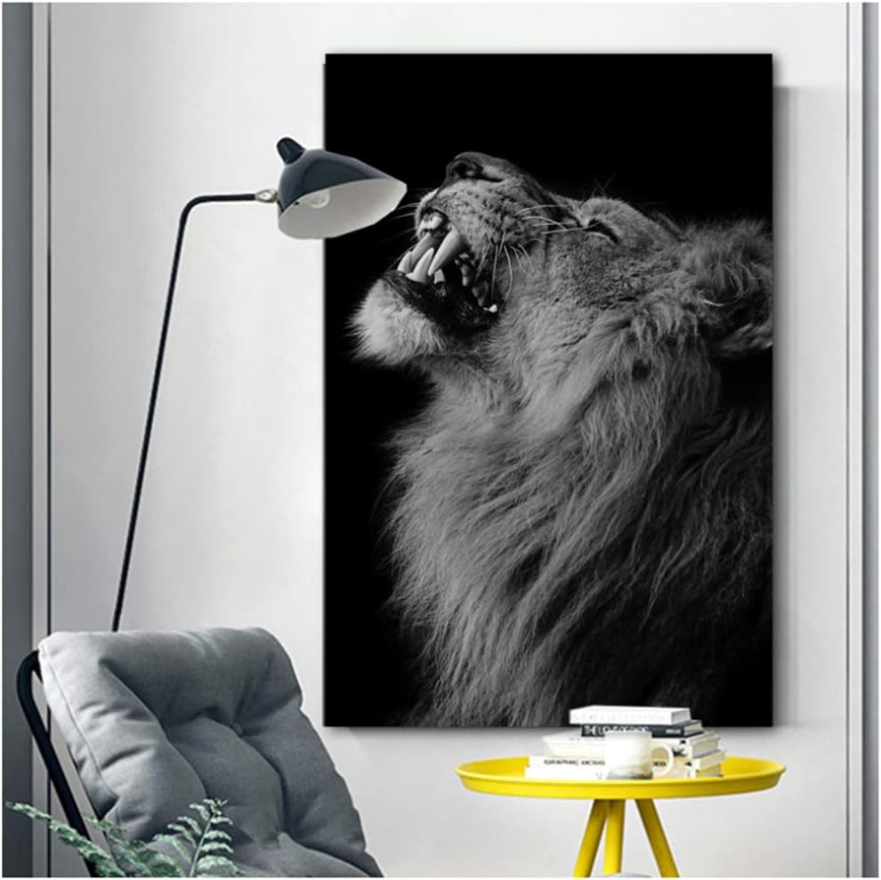 Xwpox Quadri E Stampe Su Tela Animali Leone Bianco E Nero Pittura Per Soggiorno Arte Murale Quadro Decorativo 80x100 Cm Decorazioni Per Interni Dipinti
