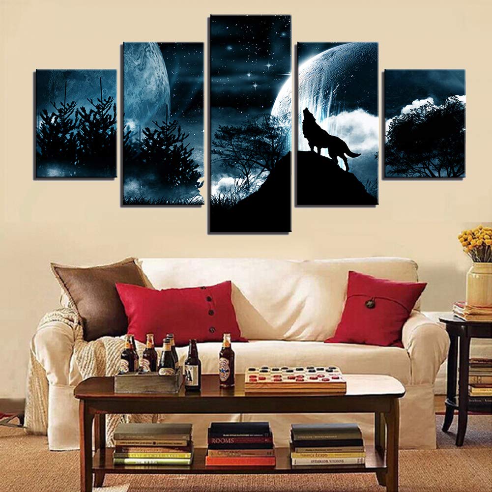 Decorazione Per Soggiorno 5 Pannelli Con Luna Piena Kuizhiren1 Foresta E Lupo Decorazione Moderna Per La Casa Multicolore Quadro Da Parete Su Tela Stampe E Quadri Su Tela Arte