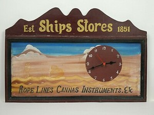 Quadro con orologio est ships stores 1851 dipinto a mano su tavola vintage raro.