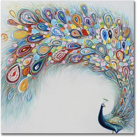 Sette Wall Arts 100 Dipinto A Mano Pittura A Olio Animale Del Pavone Diffonde La Coda Pittura Con Telaio Per Home Decor 61 X 61 Cm Amazon It Casa E Cucina