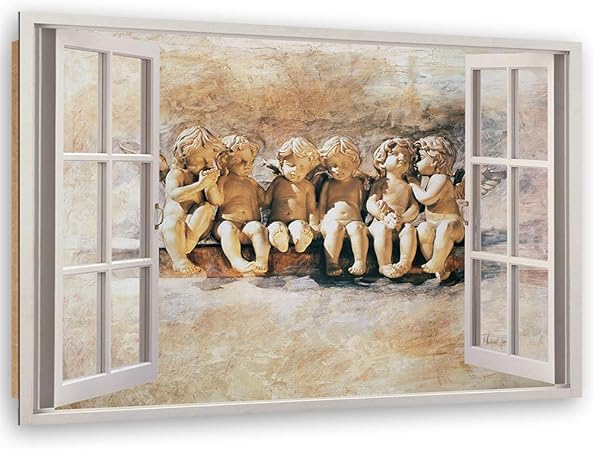 Quadro Decorativo Xxl Putti Stampa D Arte Finestra Con Vista Beige 120x80 Cm Amazon It Casa E Cucina