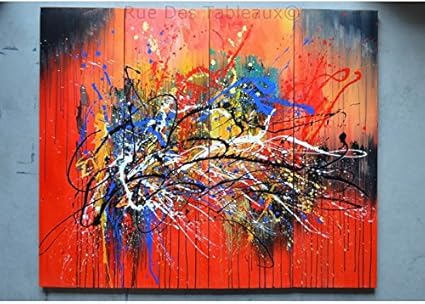Deinebilder24 Quadro Da Parete Xxl Con Schizzi Di Colori Astratti Rosso Blu Viola Giallo Su Tela E Telaio Migliore Qualita Realizzato A Mano In Germania Stampa Su Tela 70 X 90