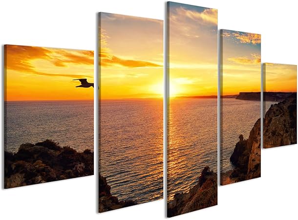 Stampe E Quadri Su Tela Casa E Cucina Dimensioni 150 X 50 Cm La Spiaggia E Il Tramonto Tra Le Nuvole Quadro Da Parete Su Tela Con Panorama Raffigurante Il Mare