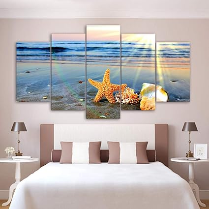 Quadri moderni tela 100x50 conchiglie stelle marine spiaggia estate arredo. Quadro terminal blocks.