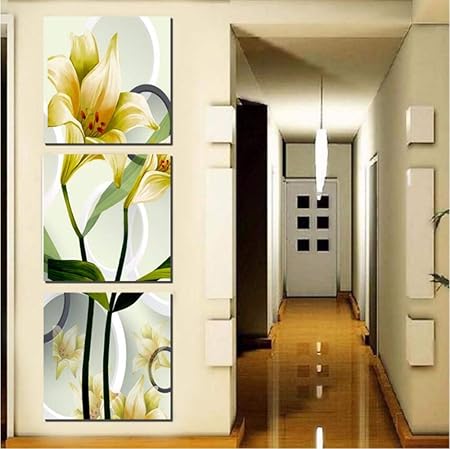 Decorazione Di Arte Fiore Giglio Bianco Classico Verticale Quadro Su Tela Pittura Stampe D Arte 3 Psc Moderna Immagini A Parete Per Corridoio Corridoio Parlor Cafe 50x50cmx3 No Frame Amazon It Casa E Cucina