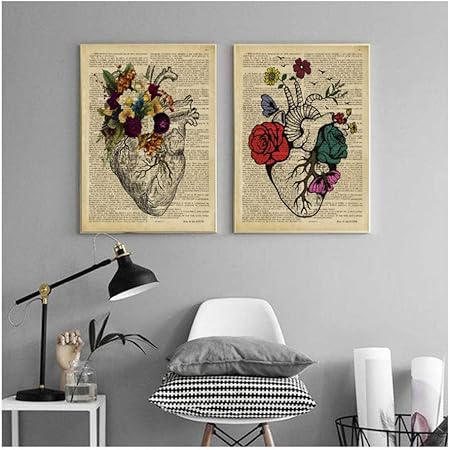 Anatomia Vintage Cuore Floreale Cervello Arte Della Parete Pittura Su Tela Poster E Stampe Retro Quadri Murali Medico Ambulatorio Arredamento 2 Pezzi 30x40 Cm Amazon It Casa E Cucina