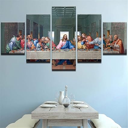 Aicedu Quadri Modulari Tela Per Soggiorno Wall Art Astratta Camera Da Letto Decorativa Stampe 5 Pezzi Ultima Cena Quadro Quadro Senza Cornice Amazon It Casa E Cucina