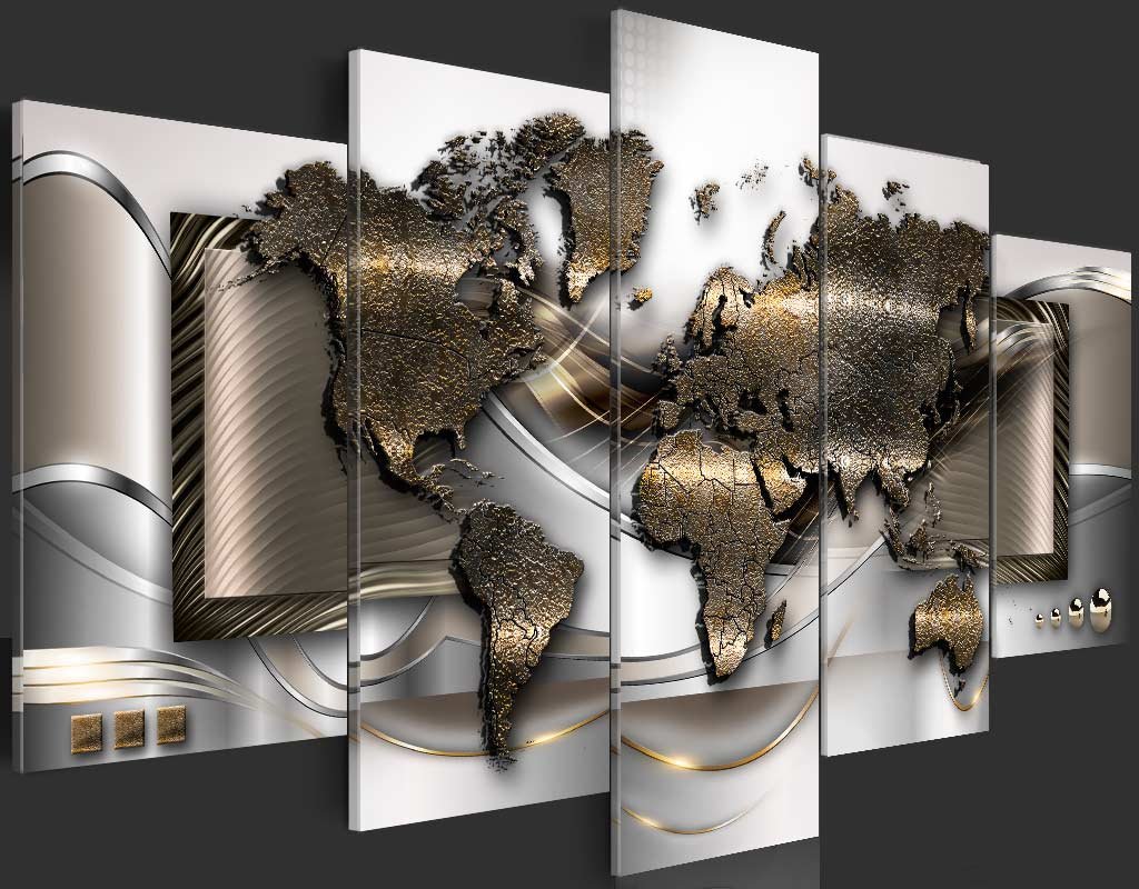 Runa Art Quadri Mappa Del Mondo 200 X 100 Cm 5 Pezzi Xxl Decorazione Murale Design Colorato 106951a Grigio Stampa Su Tela Quadri Homelook