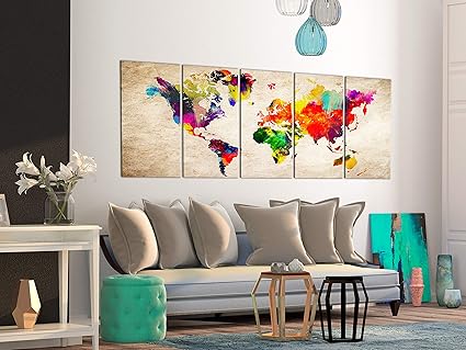 Murando Quadro Mappa Del Mondo 200x100 Cm 5 Pezzi Stampa Su Tela In Tnt Xxl Immagini Moderni Murale Fotografia Grafica Decorazione Da Parete Mappa Del Mondo Carta Continente K C 0083 B M Amazon It Casa E