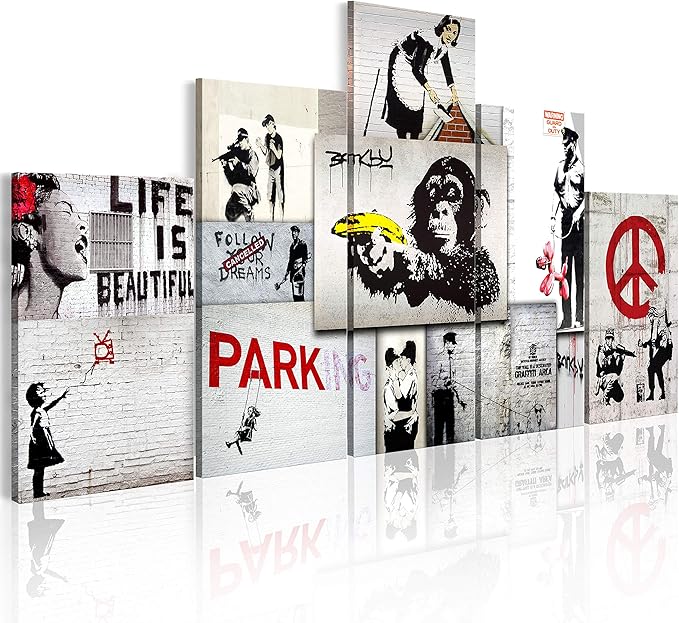Quadro Moderno Mdf Multipannello Set 5 Pezzi Banksy Shabby Bansky Eur 35 00 Picclick It