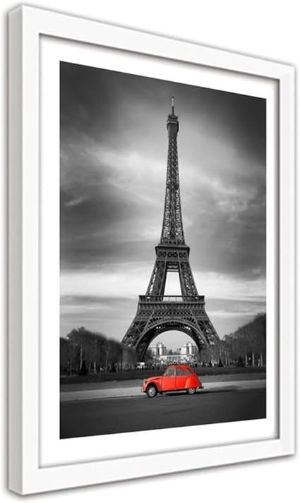 Feeby Quadro Con Cornice Marrone Vecchia Macchina Sullo Sfondo Della Torre Eiffel Niik