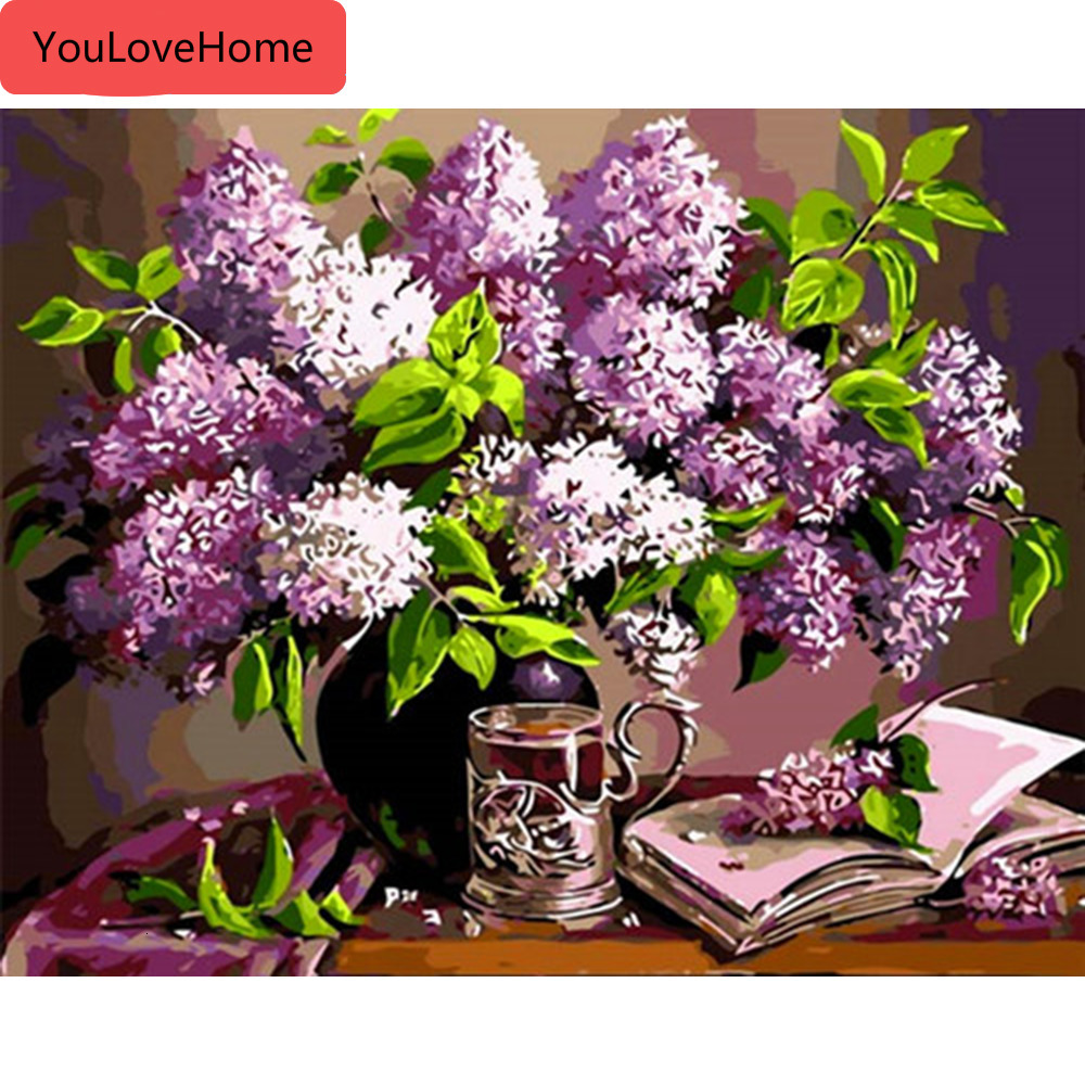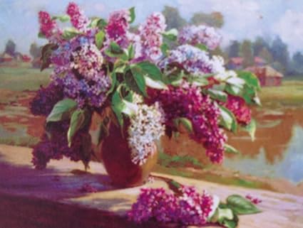 Gmmh Quadro Con Dipinto A Mosaico Di Diamanti 14 X 18 Fai Da Te Con Motivo Con Cesto Di Fiori Lilla Amazon It Casa E Cucina