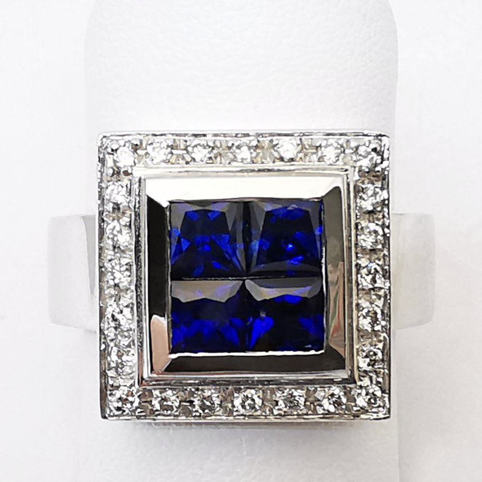 Anello Quadro Con Diamanti Bianchi E Zaffiri Aurum
