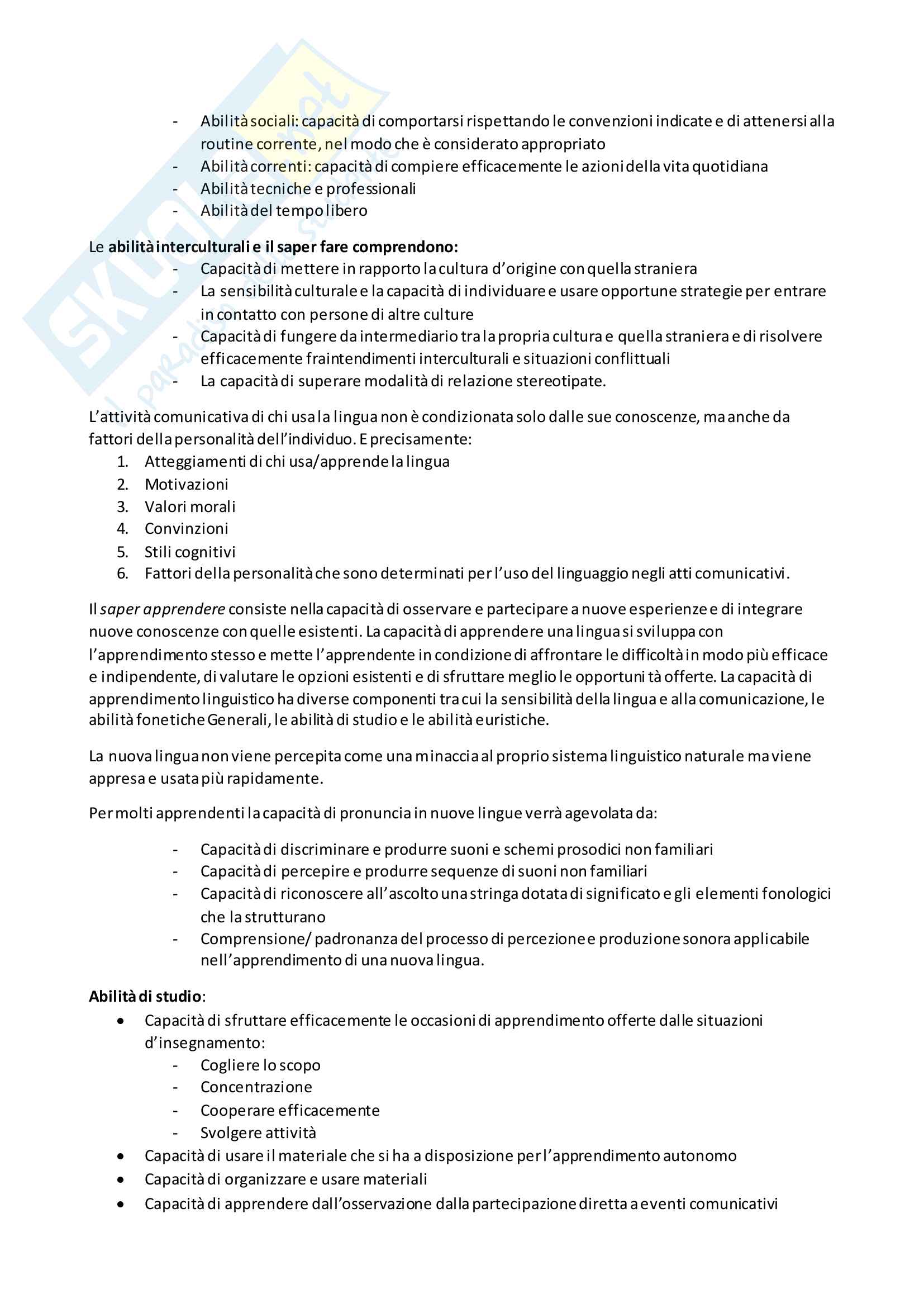 Riassunto Esame Didattica Prof Lo Prejato Libro Consigliato Quadro Comune Di Riferimento Europeo