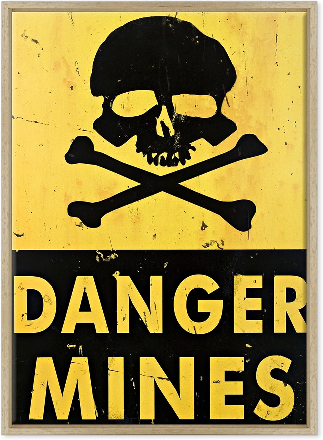 Quadro Su Tela Canvas Intelaiato Con Cornice Attenzione Mine Danger Cartello Pericolo Di Morte Teschio 50x70cm Stile Moderno Legno Naturale Cod 1164 Amazon Co Uk Kitchen Home