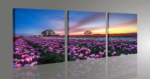 Quadro Moderno 3 Pz Campo Di Tulipani Cm 50x150 Paesaggio Stampa Su Tela Canvas Ebay