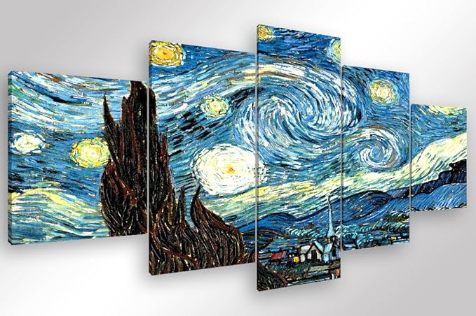 Degona Quadro Moderno Van Gogh La Notte Stellata 5 Pz Cm 200x90 Stampa Su Tela Canvas Arredamento Arte Astratto Xxl Arredo Per Soggiorno Salotto Camera Da Letto Cucina Ufficio Bar Ristorante Amazon It Casa E Cucina