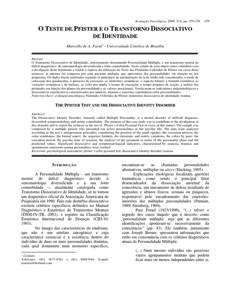 Transtorno Dissociativo De Identidade E Esquizofrenia Uma Investigacao Diagnostica Pdf Free Download
