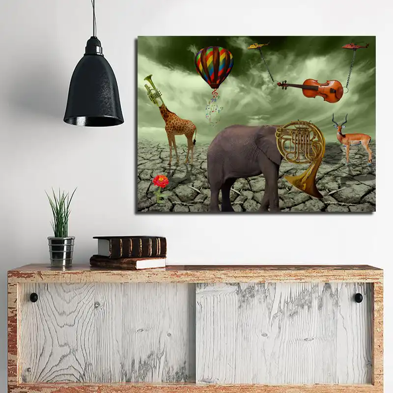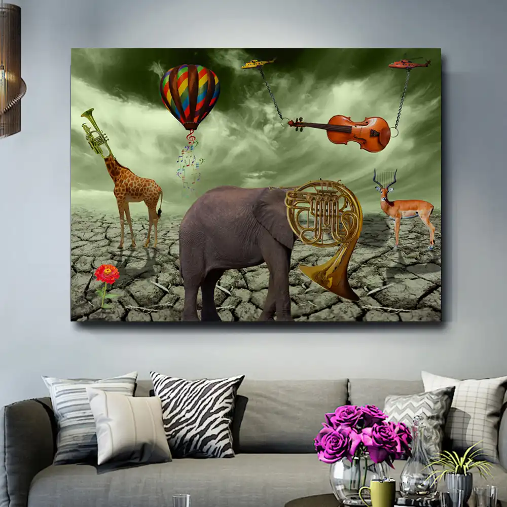 Salvador Dali Elefante Veado Trompete Quadros Da Lona Impressao Da Arte Parede Cartaz Para Sala De Estar Animal Cuadros Casa Decoracao Pintura E Caligrafia Aliexpress