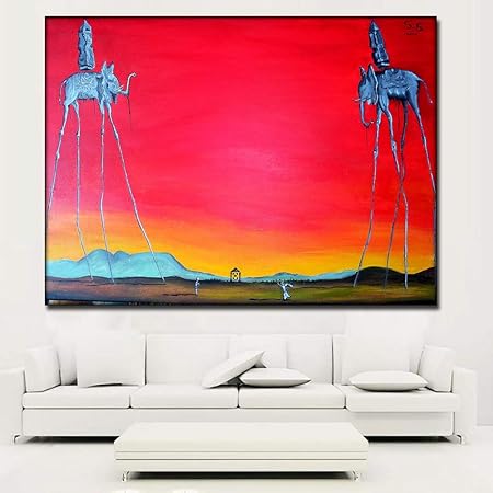 Ghjifh Stampa Su Tela Parete Poster Painting Quadro Salvador Dali Elefante Gambe Lunghe Sfondo Rosso Stampa Su Tela Stampe Stampe D Arte Da Parete Poster Per Soggiorno Decorazioni Per La Casa Amazon It Casa