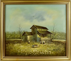 Quadro Fattoria Con Laghetto Brocante Mollard