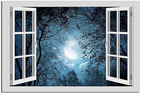 Fedzh 1 Pezzo 3d Finestra Finta Paesaggio Luna Piena Adesivo Home Sticker Stampe Su Tela Pittura Di Arte Per La Decorazione Della Stanza Poster Da Parete 60cm X 90cm Amazon It Fai Da Te