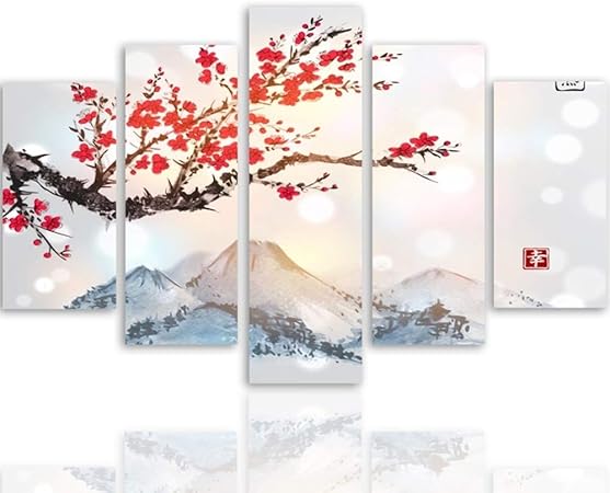 Zhouba Dipinti Da Parete Per Soggiorno Stile Moderno Con Fiori Di Ciliegio E Montagna Decorazione Da Parete Amazon It Casa E Cucina